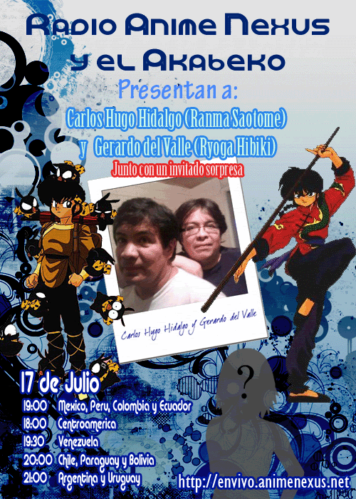 Radio Anime Nexus y El Akabeko con Javier Andres se enorgullecen en presentar la entrevista en vivo con los actores de doblaje Carlos Hugo Hidalgo Y Gerardo del Valle,