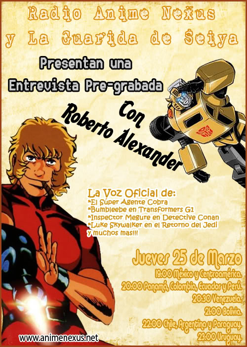 Radio Anime Nexus y la Guarida de Seiya se enorgullecen en presentar a Roberto Alexander.