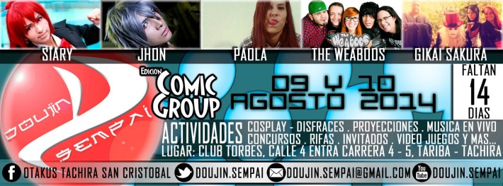 Queremos comentar, que debido a esta situación actual, se nos complica mucho el seguir dando un espectáculo de calidad, es por eso (y no es una publicidad “”engañosa””) que pensándolo bien CREEMOS SERA LA ULTIMA EDICION DEL DOUJIN SEMPAI, mas no decimos de esta agua no beberé. Como dijimos todo depende de la situación del país.. Pero hasta ahora esta es la decisión que tomamos.. Quizás sea LA ULTIMA CONVENCION DE CALIDAD, quizás seguiremos con reuniones mucho mas pequeñas. Así que esperamos puedan disfrutar al máximo de esta edición! ,Mil gracias por Acompañarnos y Creer siempre en nosotros, nunca los defraudamos y no lo vamos a hacer…