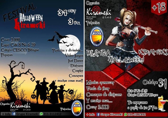 9:00 pm Rumba Halloween Kirameki solo para mayores de edad, costo: 3.000, en la taquilla se estará pidiendo documento de identidad, habrá personal capacitado para verificar la autenticidad del documento.