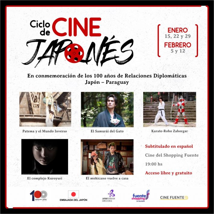 La Embajada del Japón, la Fundación Japón y el Shopping Fuente de Salemma invitan al Ciclo de Cine Japonés 2019 que se inicia el martes 15 de enero, en conmemoración a los 100 Años del Establecimiento de las Relaciones Diplomáticas entre Japón y Paraguay. A continuación todos los detalles de las funciones: Película: Patema y El …